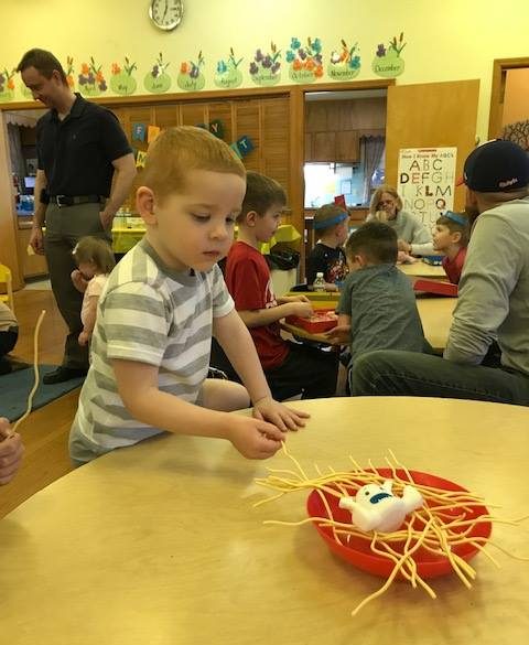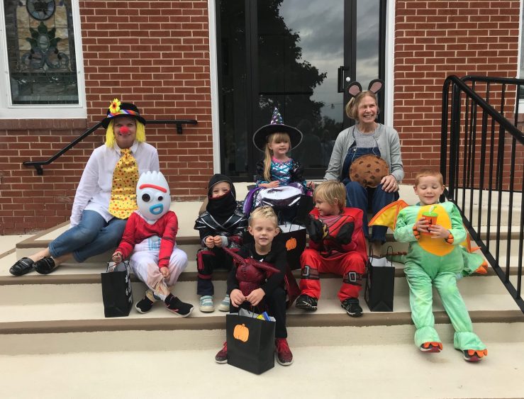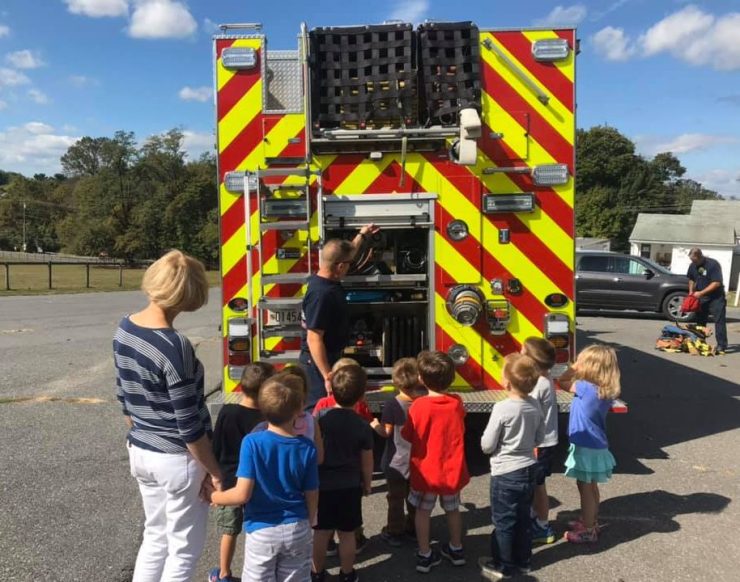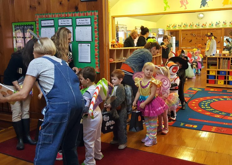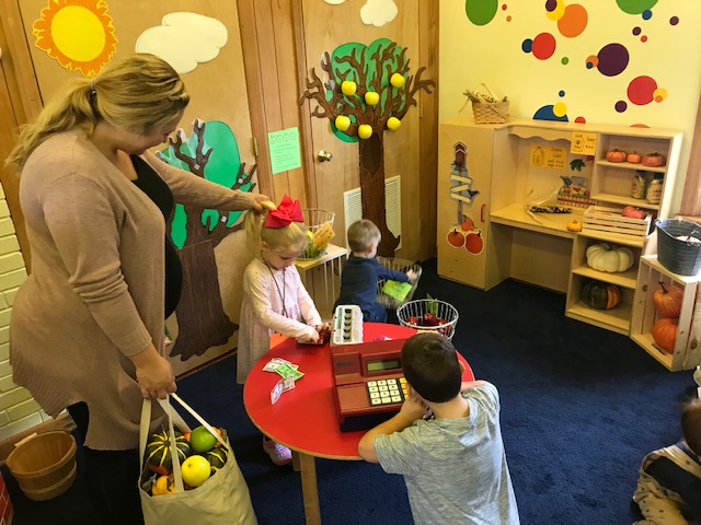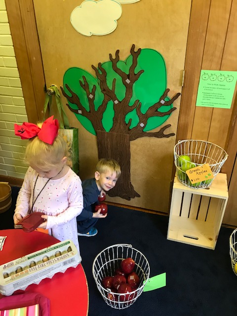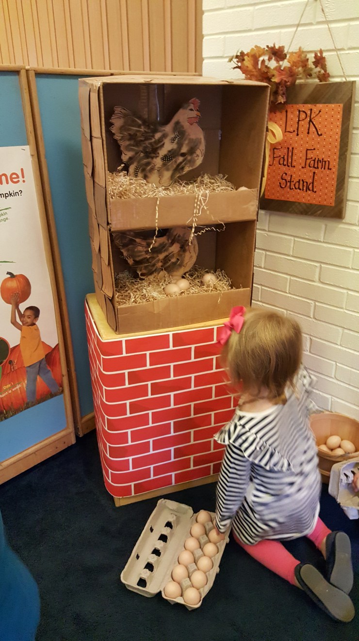 October was a busy month at LPK! So much happened and we can’t pick just one thing to highlight. We kicked off the month with a fun new center in the classroom: the LPK Fall Farm Stand, where our students got to gather eggs, pick apples, and shop for farm produce. Our four-year-old friends got to experience a visit from members of the Lisbon Volunteer Fire Company. And later in the month our three-year-old friends enjoyed a (very windy) visit to Sharp’s Farm for pumpkin picking and a hay ride. At our annual Fall Bash the LPK community gathered for pumpkin decorating, scarecrow making, and a potluck dinner. Then we finished off the month with Halloween parties and parades for each class. Whew!