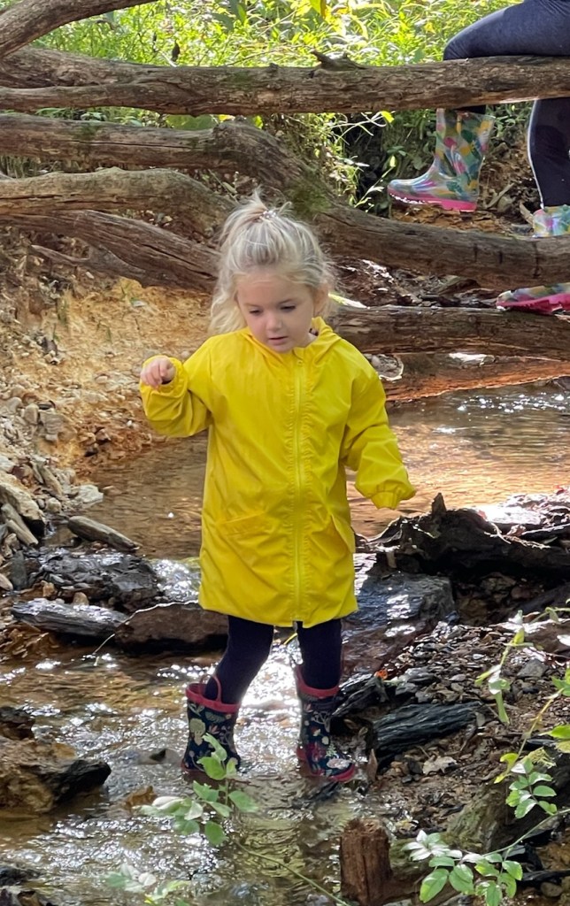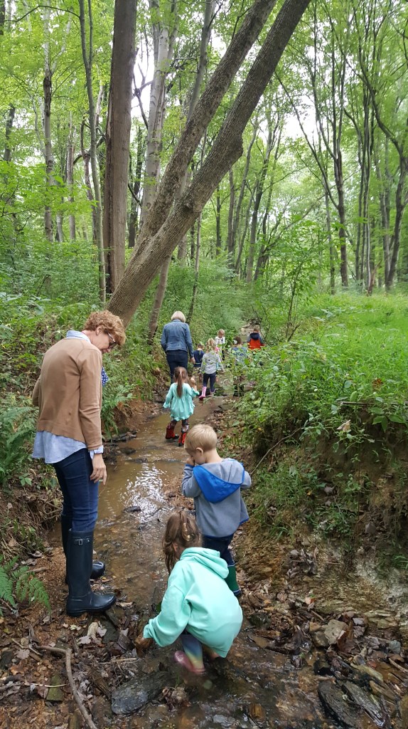 For another (and this one’s much more fun) we incorporate more outdoor time than we did before. On good-weather days in the fall and spring, we take our students across the street to Poplar Springs Park to explore the trails and the stream, and to learn about the nature that surrounds us.