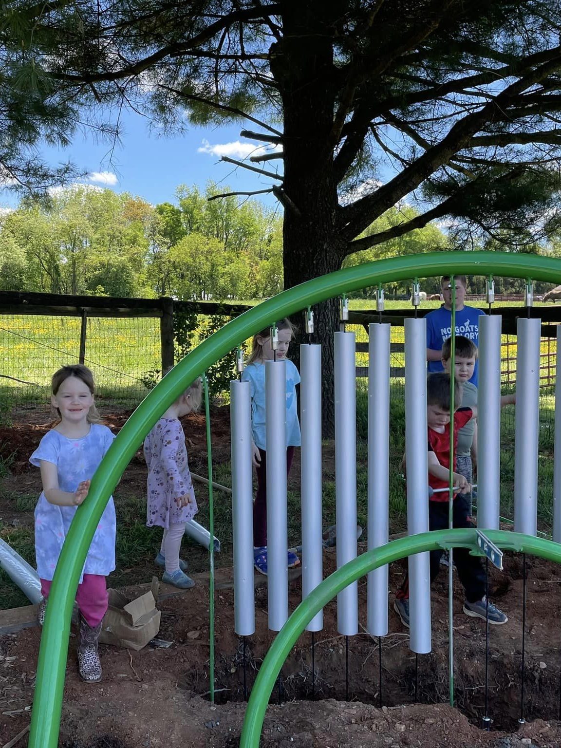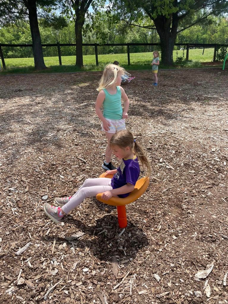 When a favorite playground staple, the spring rocker, met its end, these companies and families stepped up and helped renew and refresh our outdoor play space! Our students could not be more excited to express themselves musically and fill the air with their songs on our new instrument! Our little ones line up to take a turn on the two new saddle spinners! Everyone could not wait to give them a whirl!